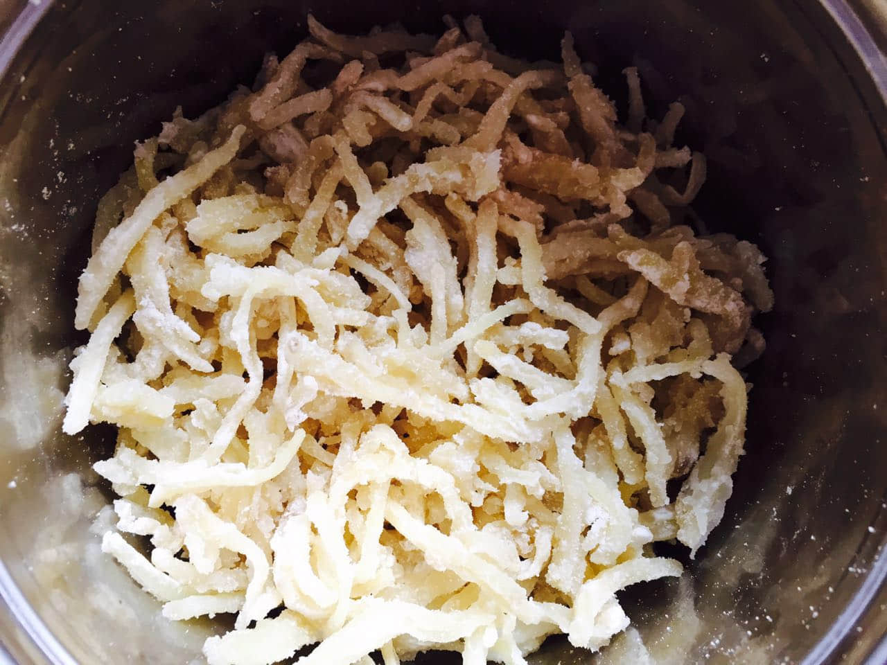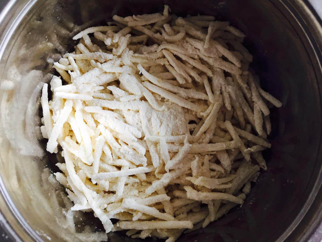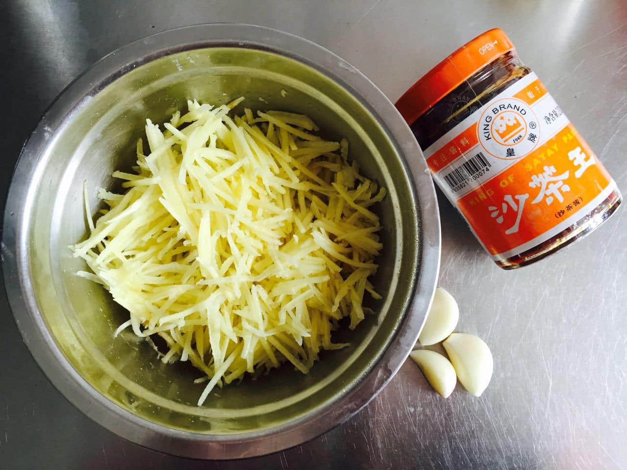 材料:皇牌沙茶王、土豆、面粉、蒜、醋、香菜 做法:1. 土豆擦成絲備用。2. 在土豆絲內(nèi)放適量面粉,以土豆絲間不粘,松散為準(zhǔn)。3. 放蒸鍋內(nèi)蒸熟,開鍋后蒸五到十分鐘。 我做的量少,用的小熊的電熱飯盒,蒸了20分鐘。4. 放涼后,弄松散備用。5. 按自己的口味倒入皇牌沙茶王,再放入香菜和蒜沫拌均即可。...