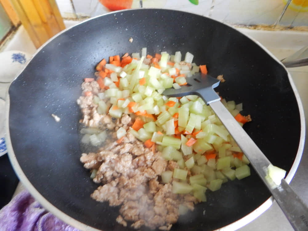 早上孩子出門去上課,點名中午要吃米粉,于是我一大早就開始泡米線,然后開始找菜準備做涼拌米線, 肉末米線加入一點皇牌沙茶王醬一起燉,做出來的味道相當的美味!