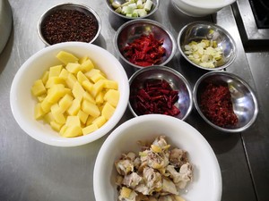 土豆燒雞塊是經典的家常菜,以土豆與雞塊為主料的菜肴,制作簡單,營養(yǎng)豐富,口感良好,清熱解毒。用料  主料 仔雞輔料 土豆(青筍或磨芋)調料 雞精,味精,鹽,白糖,豆瓣醬,生粉(最傳統(tǒng)的)土豆燒雞塊的做法步驟圖 工藝流程:土豆削皮切塊_油炸_雞改刀氽水過油炸_炒料加湯_下雞塊入味_下土豆_調味_收汁_裝盤。2. 制作過程:(1)起鍋燒油炸土豆撈出,四成油溫下入雞塊小炸一