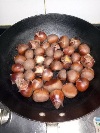 食材明細(xì)主料:栗子 1千克;輔料:植物油 1勺;調(diào)料:白糖 3勺;糖炒栗子的做法步驟圖:1. 栗子洗凈后在表面切十字花刀。2. 炒鍋里放水煮栗子。3. 大火煮10分鐘,栗子切口裂開(kāi)取出備用。4. 炒鍋放水和白糖。5. 糖水煮出大泡泡的狀態(tài)。6. 放入栗子翻炒。7. 翻炒糖汁收干時(shí)。8. 再次放入沒(méi)過(guò)的熱水煮20分鐘。9. 再次收干湯汁時(shí)就入植物油翻炒1分鐘。10. 成品圖。使用的廚具:炒鍋...