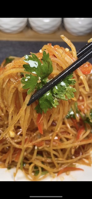 土豆不要再炒著吃了,這樣涼拌著吃,香辣開胃,特別下飯用料  土豆 2個(gè)蒜 2瓣雞精 半勺鹽 半勺白糖 半勺生抽 1勺老抽 半勺蠔油 1勺醋 1勺香菜 2根蔥 2根紅椒 半個(gè)辣椒油 1勺香辣開胃的涼拌土豆絲的做法步驟圖1. 土豆絲切絲洗掉表面淀粉2. 水開放白醋焯水一分鐘3. 撈出4. 過涼水5. 放大一勺蒜末,鹽,雞精,白糖,生抽,老抽,蠔油,醋6. 紅椒絲,蔥花,香菜7. 一