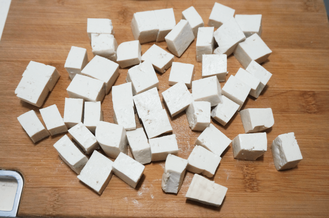 1. 北豆腐一塊,紫皮洋蔥半個(gè),沙茶醬準(zhǔn)備好;