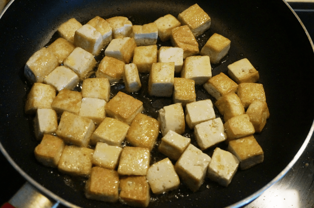 2. 北豆腐定型好,口感結(jié)實(shí),中小火煎至四周金黃,不易碎;