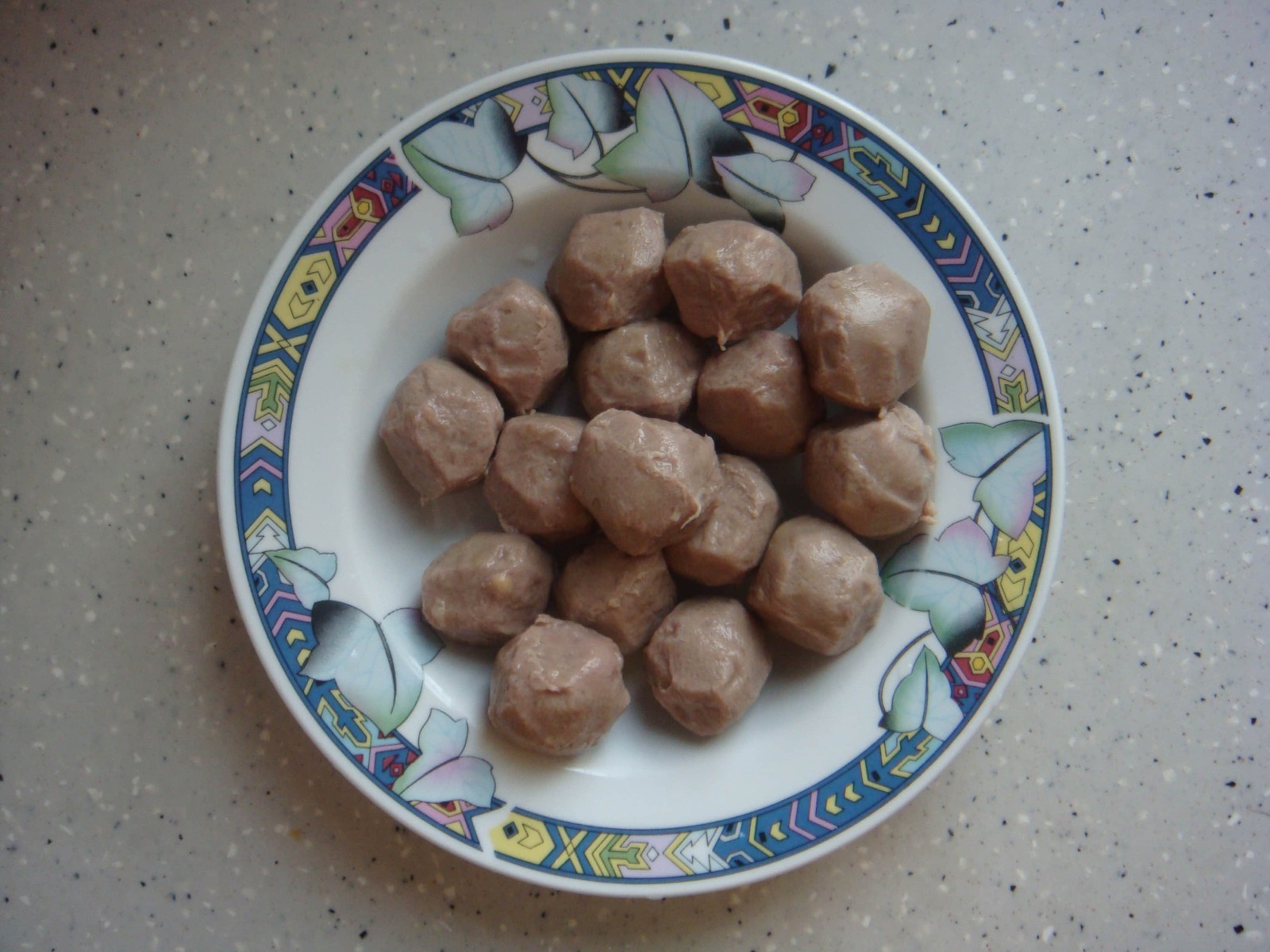 1.準(zhǔn)備食材:潮汕手打牛肉丸:250克,進(jìn)行蒸制,鍋上汽后蒸大約10分鐘左右即可,備用。