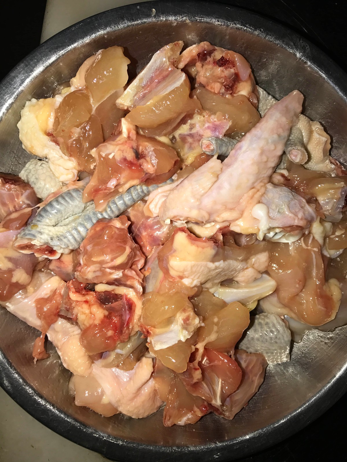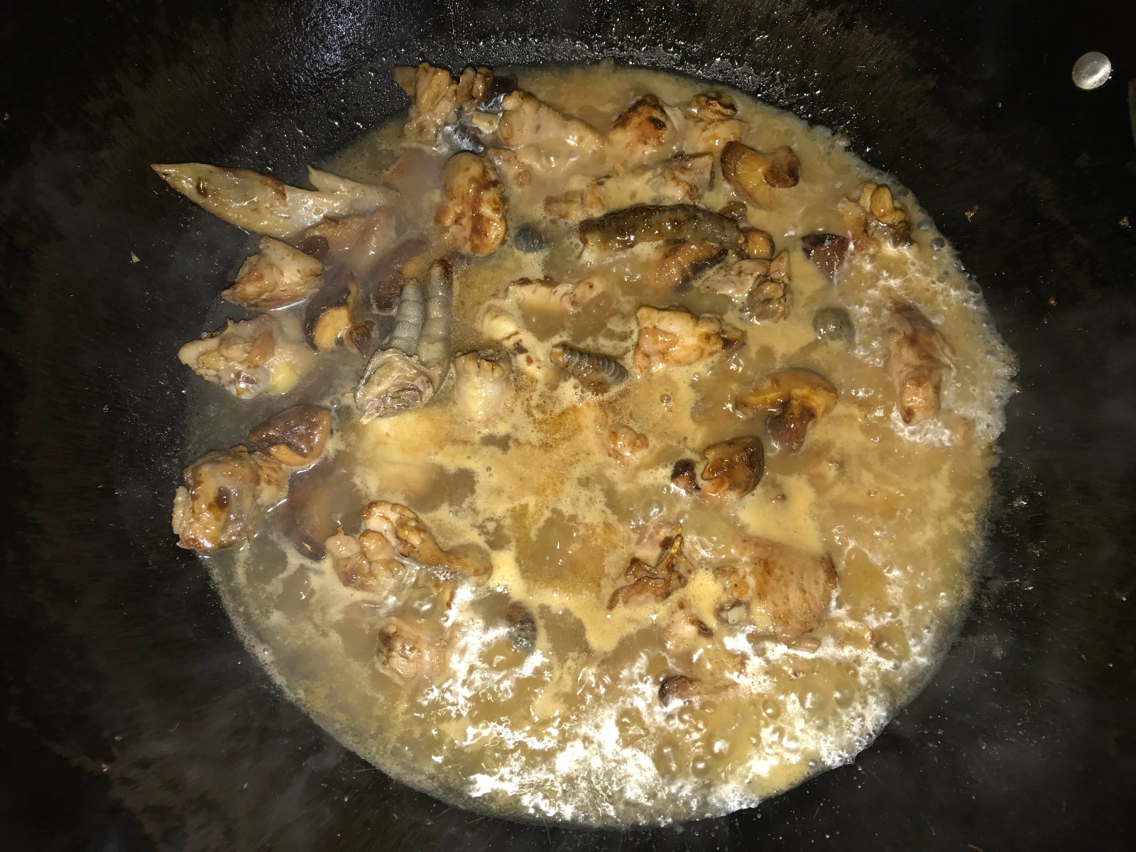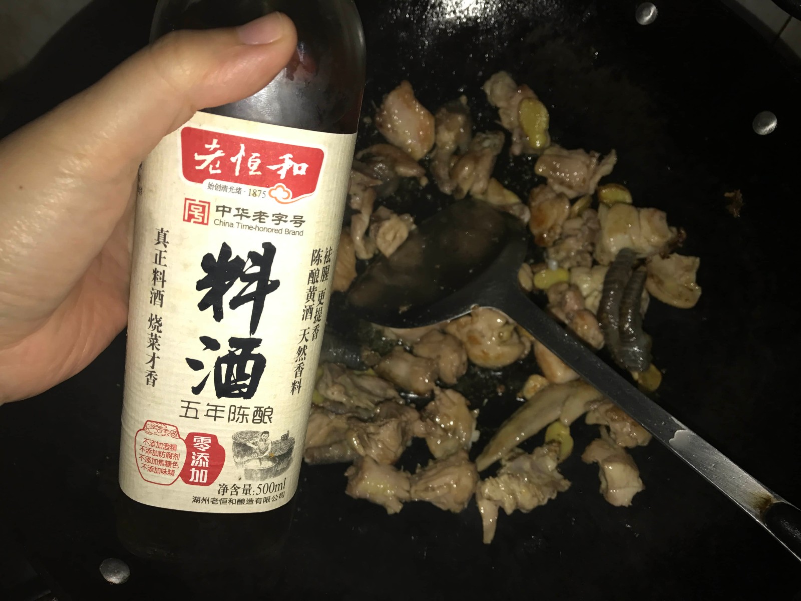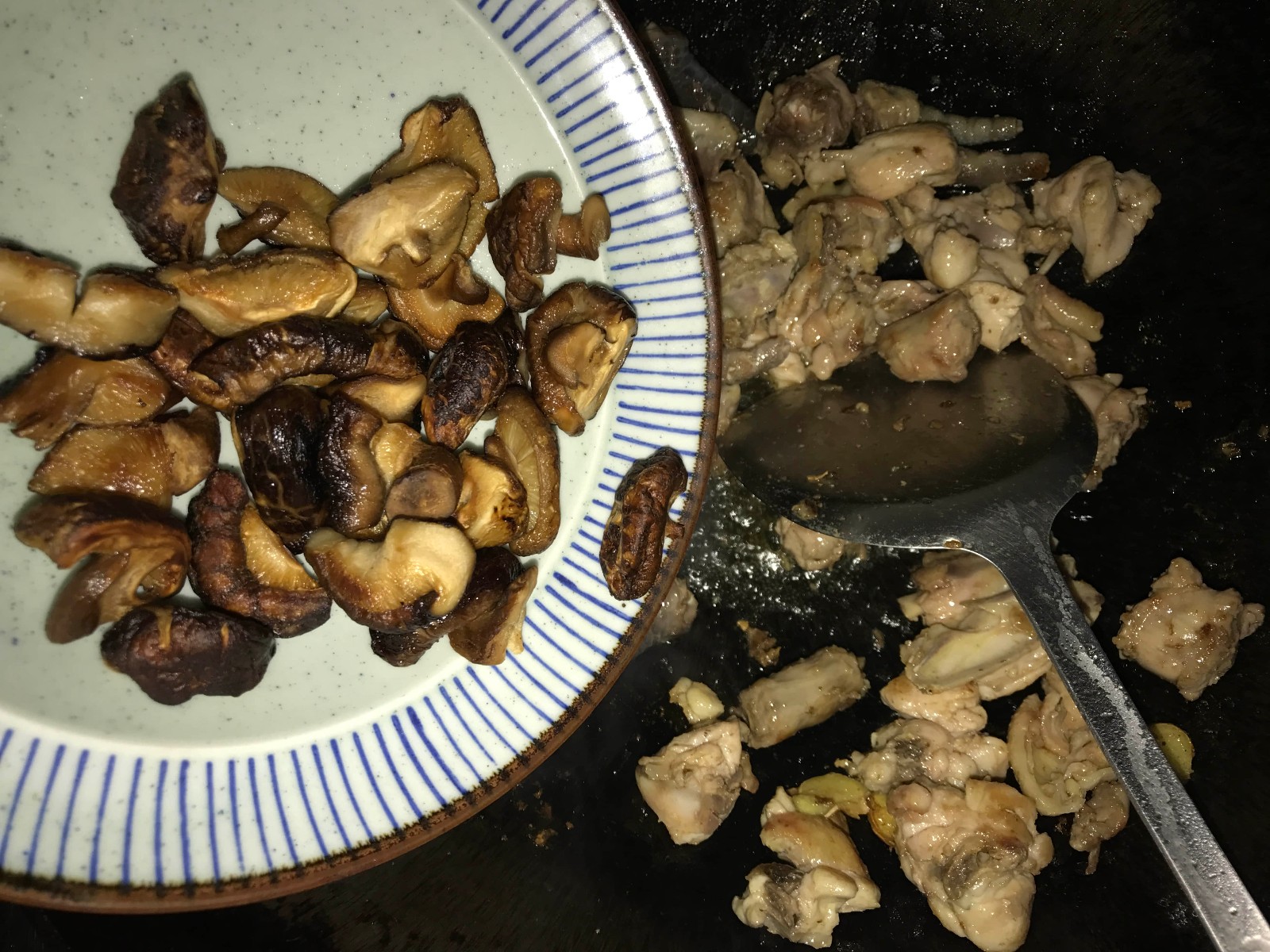 4. 雞下鍋,攤開(kāi)煎一面,然后再翻炒