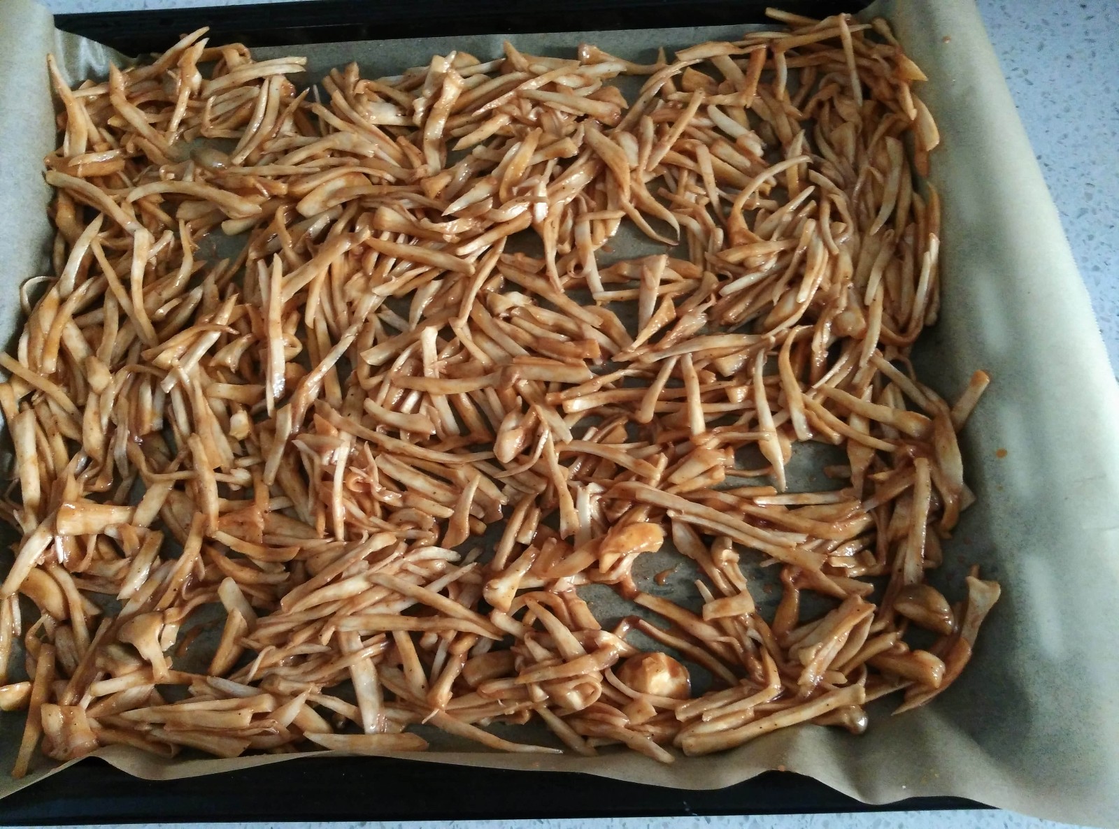 杏鮑菇營養(yǎng)豐富,富含蛋白質(zhì)、碳水化合物、維生素及鈣、鎂、銅、鋅等礦物質(zhì),可以提高人體免疫功能,具有抗癌、降血脂、潤腸胃以及美容等作用,富含人體所需的多種氨基酸,是一種營養(yǎng)價值極高的菌類,又因其猶如鮑魚一般的口感,所以深得我愛。周末在家閑來無事,用沙茶醬烤了這個杏鮑菇干當做煲劇零食~嘿嘿,還蠻喜歡的,搭配白粥吃也很棒。 材料:杏鮑菇500克 皇牌沙茶醬5克醬油15克 耗油8克辣醬10克 番