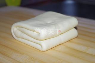 3.然后疊成趕薄再疊被子狀。保鮮膜包好放入冰箱醒面30分鐘。