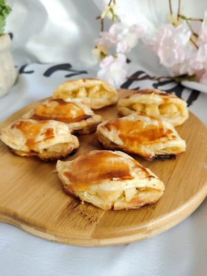 最近哪里都不能去,零食鬧饑荒了,臨時(shí)發(fā)現(xiàn)還有蛋撻皮,馬上忙起來。用料 蘋果 半個(gè)個(gè)雞蛋黃 1個(gè)牛奶 少許植物油 少許克蛋撻皮 9個(gè)蛋撻皮蘋果派的做法步驟圖: 1. 將蘋果去皮切丁備用2. 鍋中放入油加熱,倒入蘋果丁和少許牛奶3. 將蘋果丁煎至金黃關(guān)火備用4. 取蛋撻皮將蘋果丁放入適量,上下對(duì)折好即可5. 將所有對(duì)折好的蛋撻皮刷蛋黃液6. 烤箱預(yù)熱五分鐘,180度15