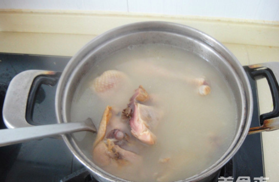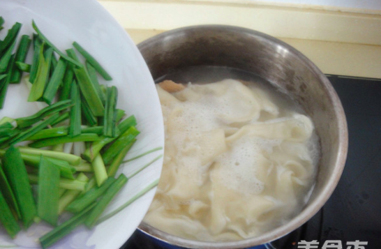 輔料:油10毫升;鹽2克;清水100克;雞湯一碗;青蒜20克