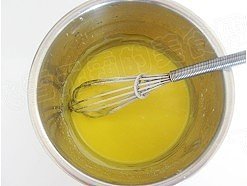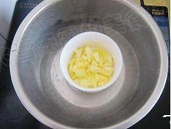 1,黃油涂在烤碗上,也可以用軟化的黃油。我是因為已經(jīng)溶化了黃油,所以就用溶化的黃油了。記得要刷均勻哦。