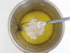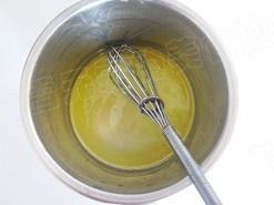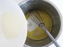 9. 將打發(fā)后的蛋白和蛋黃黃油液自下而上攪拌均勻