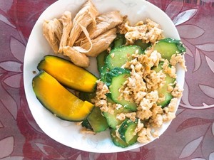 5. 貝貝南瓜+雞胸肉+黃瓜炒蛋