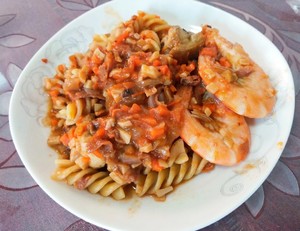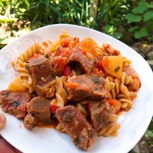 6. 這個我超級喜歡吃,全麥螺旋面,自己熬的番茄肥牛胡蘿卜醬,酸酸的特別開胃哈哈