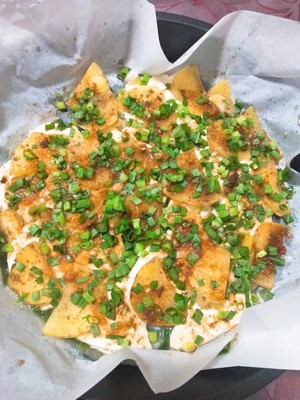 7. 烤土豆,下面墊的是豆腐,撒一點點孜然粉,和蔥花,也很好吃,蔬菜的攝入量不夠我一般都是吃黃瓜,黃瓜是我為數(shù)不多喜歡吃的綠色食物