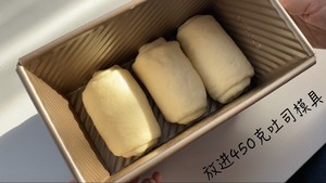 11. 按這樣總共卷三個150克面團放在450克的吐司模具中。