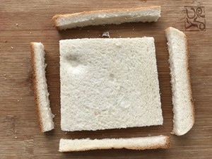 13. 先把吐司切成厚度1厘米的吐司切片,然后去掉上色的四邊。