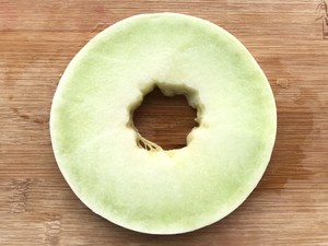 14. 兩個顏色的蜜瓜,也切成1厘米厚度的片,去掉中間的籽。