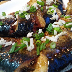 3. 盛盤(pán),撒一點(diǎn)蔥花蒜末,#紅燒青魚(yú)#就可享用啦。