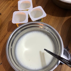 2. 準(zhǔn)備好所需的材料(三瓶100毫升的酸奶,因?yàn)槿サ羯w子上的和瓶子上的就剩差不多250左右)