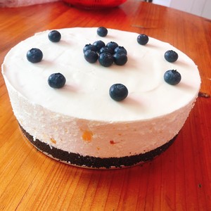 10. 然后拿出來用杯子放在底下脫模,表面放點(diǎn)藍(lán)莓或者其他水果做點(diǎn)綴就很好看啦(我脫模沒有用吹風(fēng)機(jī)將邊邊吹一圈弄漂亮,請忽略哈