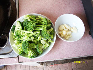 1. 西蘭花洗凈撕小塊、蒜切片。