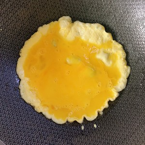 2. 鍋里倒入少許油燒熱,雞蛋打散,倒入炒鍋,等雞蛋凝結(jié)七八分熟撈出來