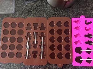 3. 融化巧克力的過程準備好模具(有水的話可以用吹風機吹干);