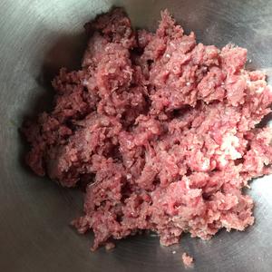 1. 牛肉洗凈切塊,用廚房紙吸干水份,然后絞成餡,加入雞蛋,生抽,老抽,蠔油,鹽,黃豆醬,十三香,淀粉,