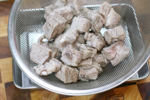 2. 鍋中倒入冷水,放排骨煮開后撈出,溫水洗凈瀝干備用。