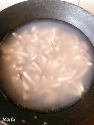 2. 魷魚絲入開水焯2分鐘,不要過老,撈出洗去浮沫備用。