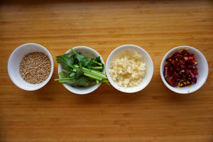 3.將適量醋、白糖、鹽、醬油、蒜粒倒入碗內(nèi)攪拌均勻待用