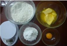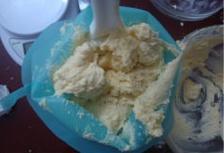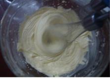 2. 黃油從冰箱取出,切小塊,放入微波爐叮30秒軟化。加入糖粉用電動打蛋器打發(fā)至蓬松的奶油狀。