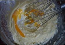 3. 加入蛋黃,可以滴幾滴檸檬汁,繼續(xù)用打電動打蛋器攪拌至蛋液完全融進(jìn)去為止。