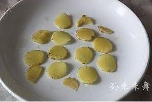 3. 取一個大盤子將切成薄片的生姜平鋪到大盤子中