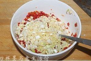 6. 放入切成末的蔥白、生姜末、還有大蒜末