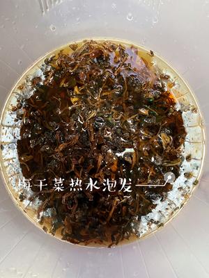 2. 梅干菜洗干凈,熱水泡發(fā)。