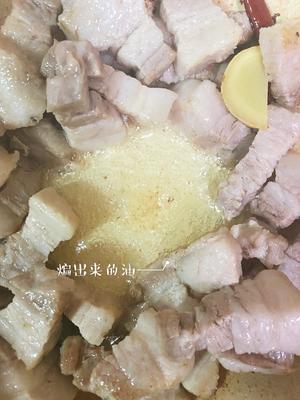 4. 放入過(guò)水好的五花肉,中小火翻炒,讓五花肉出油。