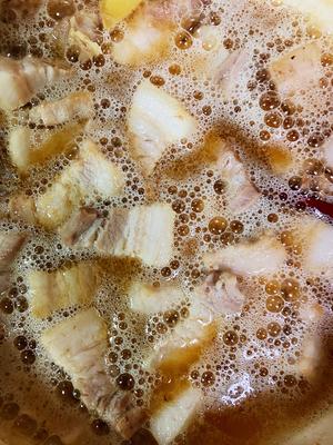 8. 加入2勺生抽?2勺老抽?3小塊冰糖,蓋鍋蓋中火燉20分鐘。