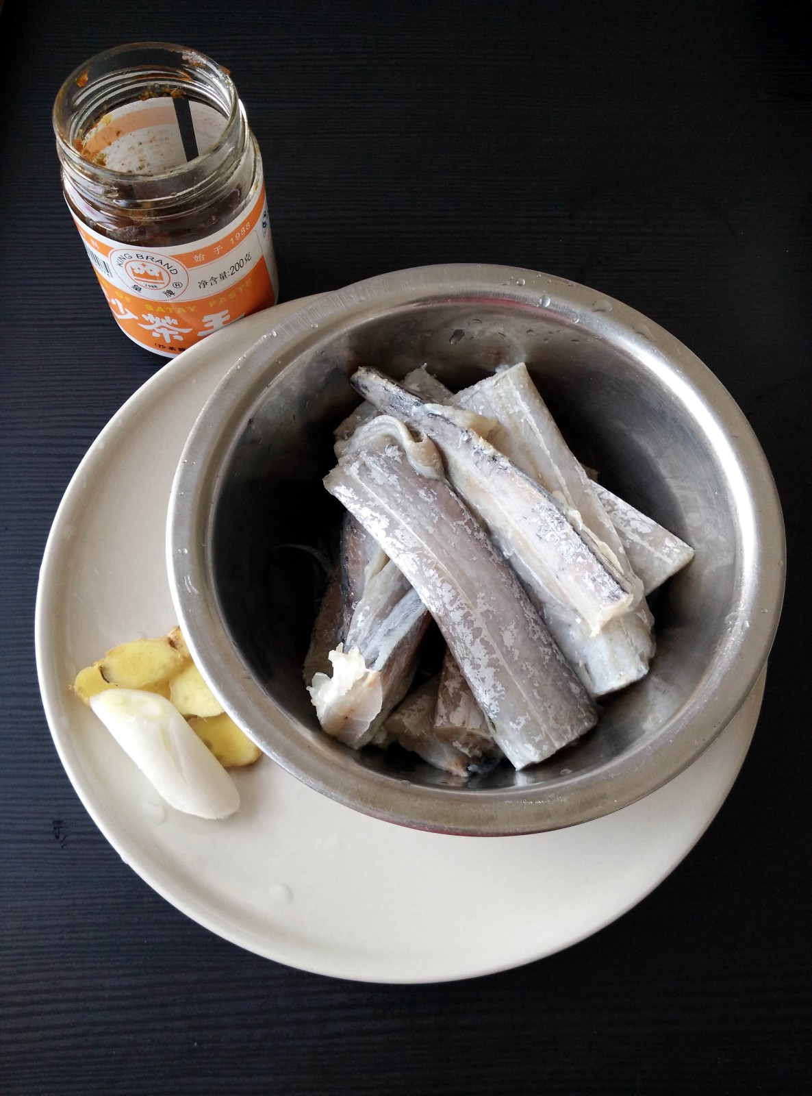 備好原材料:帶魚,姜片,大蔥,沙茶醬;