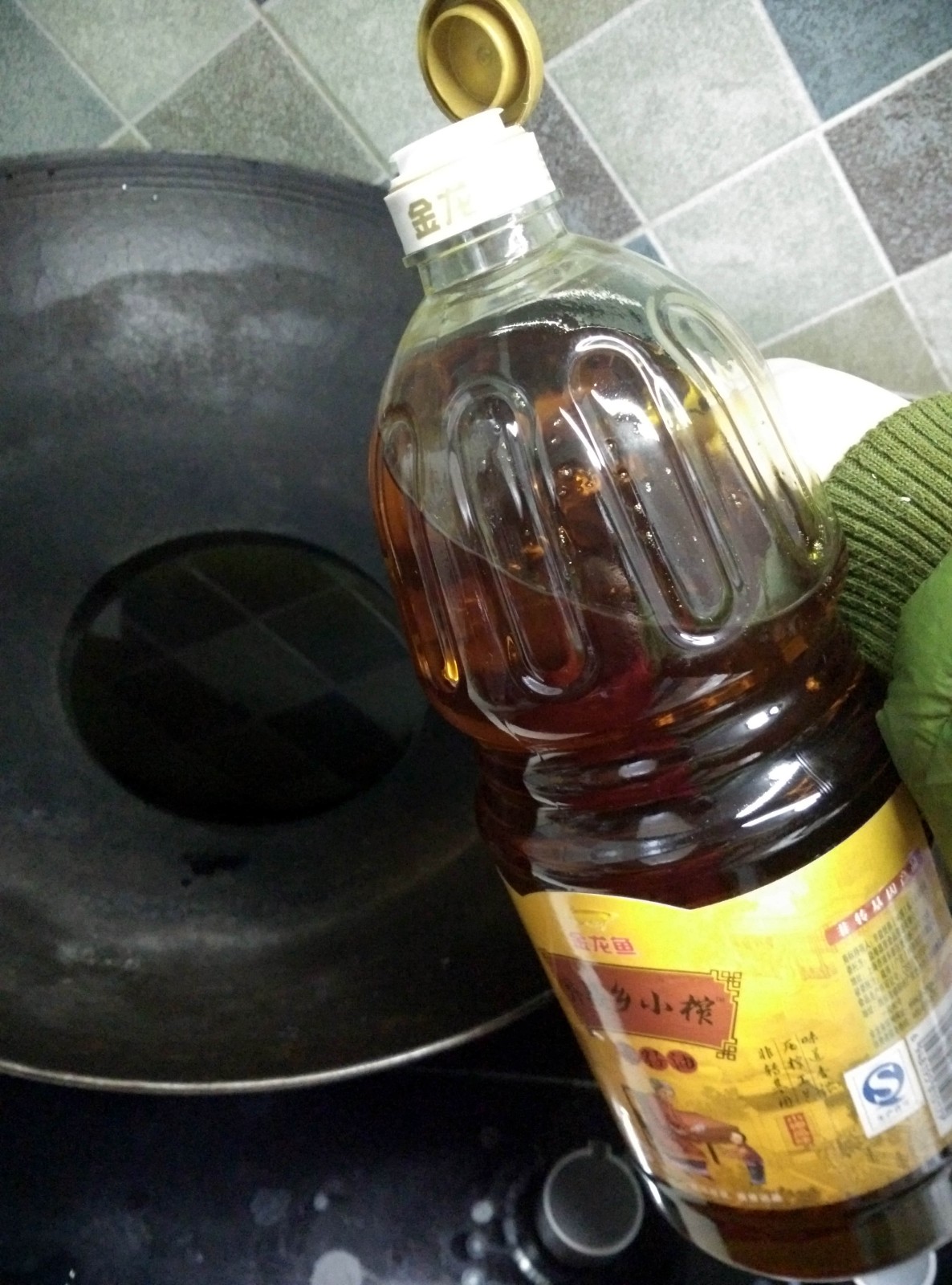 5. 炒鍋燒熱,倒入適量菜籽油;